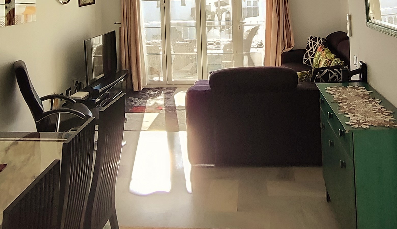 The apartment is very well kept and clean and comfortable, just having returned from a winters break in LaCala. Its location is perfect only a minutes walk from the beach and to the shops with many 1st class restaurants and supermarkets. The apartment has two very comfortable bedrooms(lovely beds) two bathrooms both with showers, the kitchen is equiped with all your needs, the living area is light and comfortable with by folding doors leading to a small south facing balcony giving sun all day long. Our hosts were very nice and easy to communicate with. We both thoughly enjoyed our stay and will be returning to this apartment later in the year as we totally recommend this property 5 star Rating